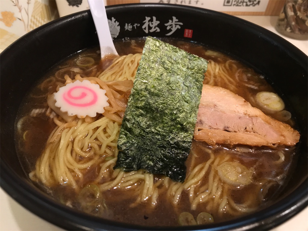 - あっさりとした口当たりの魚介とんこつラーメン(醤油味)