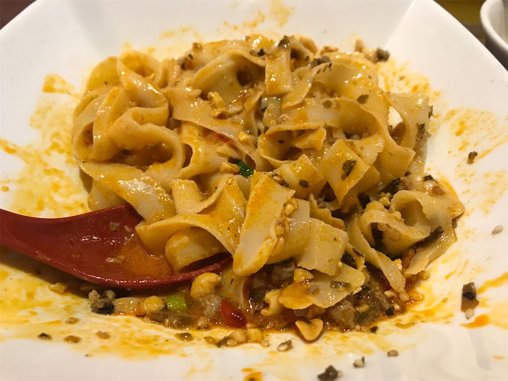 ちなみに、同種のメニューで、普通の麺を使った汁なし担々麵もありますが、同様のボリュームでした。デフォルトの麺量が、他店に比して多いのかもしれません。